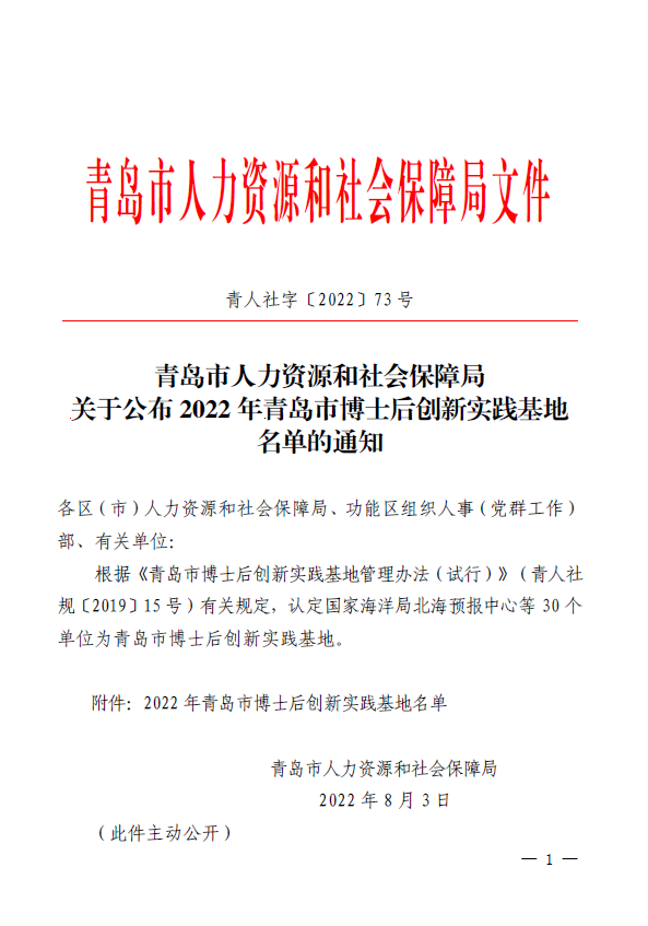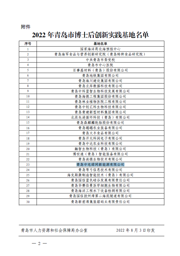 青島中電綠網新能源有公司榮獲“青島市博士后創新實踐基地”