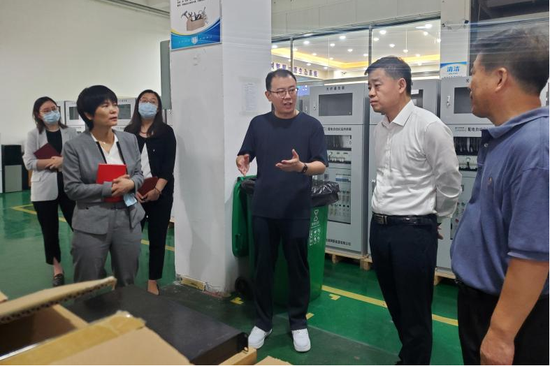 2022年9月16日,青島高新區(qū)招商部部長李明寬、副部長華熙鳳一行蒞臨我司參觀指導,青島中電綠網(wǎng)新能源有限公司總經(jīng)理劉鵬,副總經(jīng)理孫艷君熱情接待。
